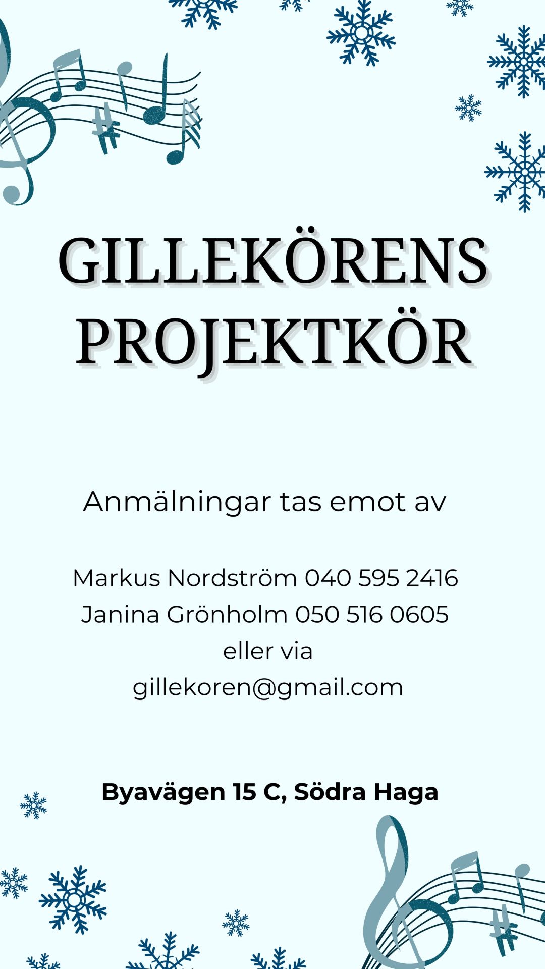 Vi tar gärna emot nya sångare till Gillekören. Se information ovan.